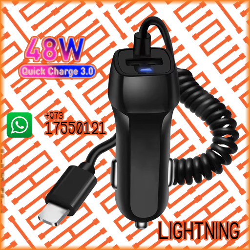 3CC 48W CAR CHARGER WITH LIGHTNING CABLE +USB-A