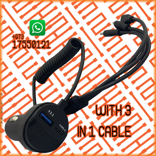 3CC 48W CAR CHARGER WITH TYPE-C CABLE + USB-A