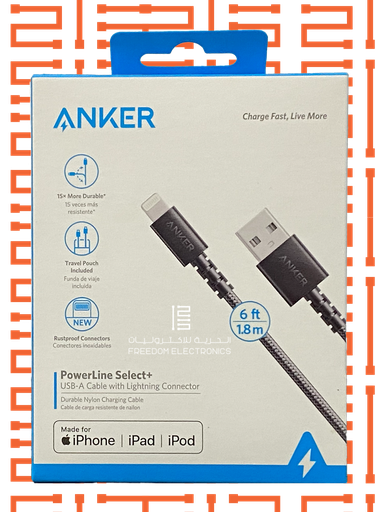 ANKER POWER LINE SELECT 6FT BLACK USB-A CABLE WITH LIGHTNING CONNECTOR